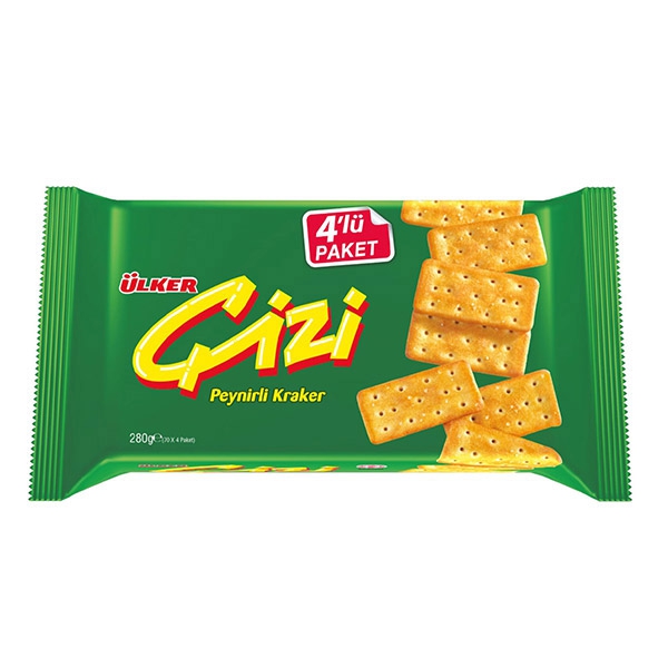 بیسکوئیت اولکر (Ulker) Cizi با وزن 280 گرم یکی از محصولات بی نظیر شرکت اولکر کشور ترکیه در تولید بیسکوئیت می باشد. این بیسکوئیت ترد اولکر، مناسب برای مصرف سنین بزرگسالان و کودکان میباشد. بیسکوئیت اولکر با طعمی خوشمزه و لذیذ مناسب برای صبحانه، عصرانه و میان وعده مفید به همراه چای است. بیسکوئیت ترد اولکر تهیه شده از آرد گندم، تخم مرغ، روغنهای گیاهی، تاول ها (کربنات هیدروژن آمونیوم، کربنات هیدروژن سدیم، دی سدیم دی فسفات)، پودر کشک (شیر)، نمک، شربت قند معکوس، شکر، طعم دهنده (شیر)، پودر شیراب شده، پودر پنیر (0.2 ٪)، عامل آرد (متابیزولفیت سدیم) می باشد. این محصول کراکر نمکی در واقع نوعی بیسکوییت ترد می باشد که با طعم پنیری تجربه متفاوتی را به مصرف کننده ارائه می دهد و به دلیل طرفداران زیادی که دارد یک محصول نوستالژیک به شمار می رود. این محصول را بهتر است در جای خشک و خنک نگه داری کنید.